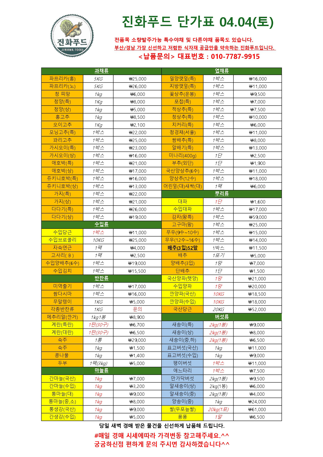 단가표 04.04 (토) (