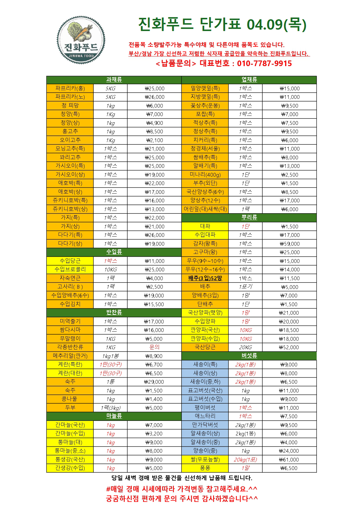 단가표 04.07(화) (