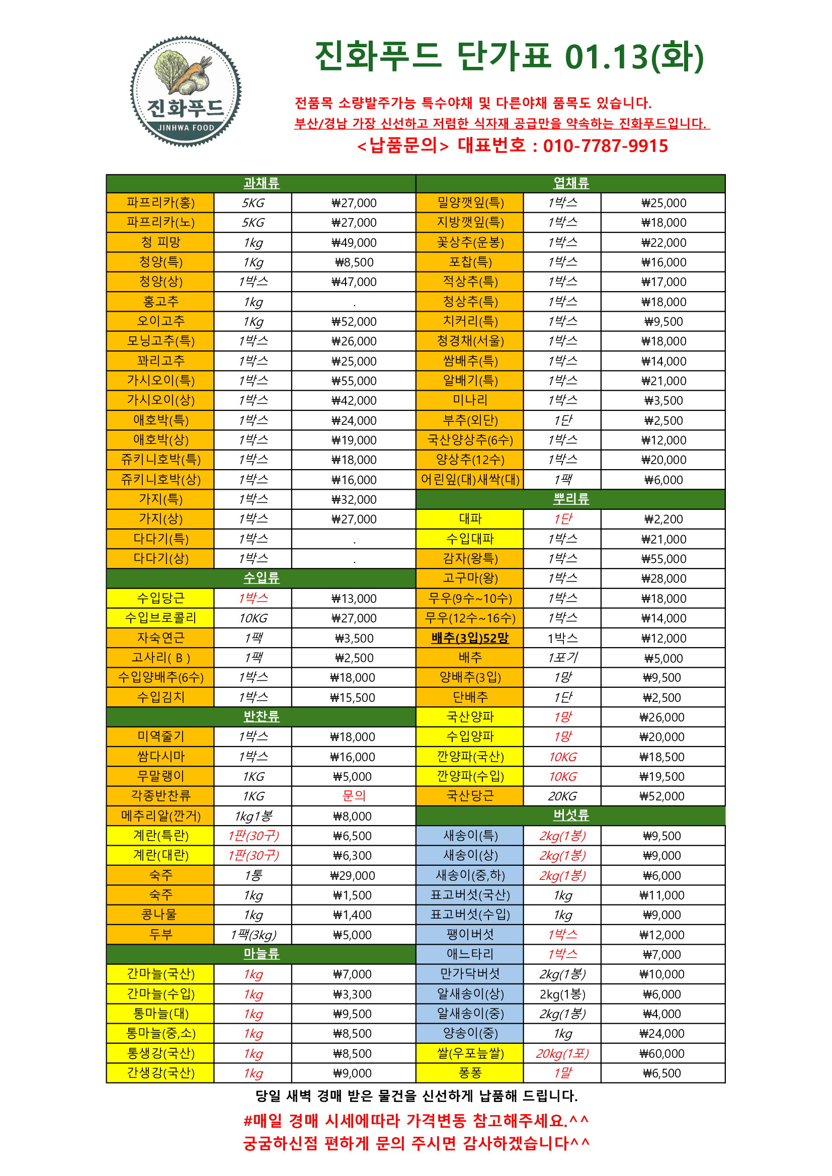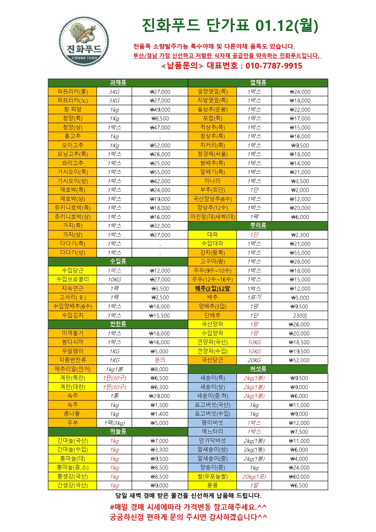 매일 새벽에 경매를 받아 좋은 가격에 납품합니다.